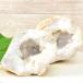 麻袋入りの小さめのジオード詰め合わせと一緒にこちらも1つだけ購入。 小さめのものは中にとんがった半透明な六角推の様なクリスタルがキラキラして美しいですが、こちらはそれと少し様子が異なり、透明感はなく真っ白で細かい結晶が光っておりまた違う美しさでした! 届いたものは、打撃を加えるとまずパカっと2つに割れ、その断面は表面と同じ石でキラキラ感がないのであれ?と思いましたが、よく見ると2つのジオードが1つの玉になっていたことが分かりました。 なので2回割る楽しみが味わえて、お得+当たりの気分が味わえました!少々値は張りますが、価値はありました!